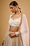 Featuring an ivory lehenga for girls in viscose georgette base with sequins and zari embroidery. It is paired with an embroidered blouse and a soft net dupatta. Style it with sandals, a sling bag and an embellished hairband, ideal for any festive occasion.