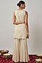 Featuring an ivory kurta for girls in soft net base with thread and sequins embroidery. It is paired with viscose georgette embroidered sharara pants and a net dupatta. Style it with sandals, a sling bag and an embellished hairband, ideal for any festive occasion.