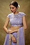 Featuring a lavender lehenga for girls in soft net base with sequins and floral thread embroidery, including a can-can. It is paired with a blouse having cap sleeves, and a sweetheart neckline, including a dupatta. Style it with sandals, a sling bag and an embellished hairband, ideal for any festive occasion.