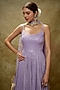 Featuring a lavender anarkali for girls in viscose georgette base with a strappy round neckline, sequins, and thread embroidery. It is paired with a soft net dupatta. Style it with a pair of sandals and hair accessories for any festive occasion or sangeet ceremony.
