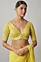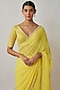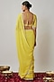 Featuring a lemon yellow and gold saree for girls in viscose georgette base. It is paired with a blouse having sequins embroidery and a butter crepe underskirt. Style it with sandals and a hair clip for a wedding, sangeet or festive ceremonies.