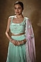 Mint Soft Net Sequins Embroidered Lehenga Set For Girls