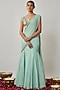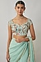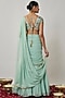 Featuring a mint lehenga saree or girls in viscose georgette base with an attached embroidered drape. It is paired with a blended raw silk blouse having floral threadwork. Style it with a pair of sandals and hair accessories for any festive occasion or mehendi ceremony.