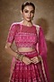 Featuring a pink lehenga for girls in soft net base with pockets, sequins, dori and thread embroidery, including cancan. It is paired with an embroidered blouse having illusion neckline and a dupatta. Style it with sandals, a sling bag and an embellished hairband, ideal for any festive occasion.