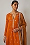 Saffron Orange Viscose Georgette Embroidered Kurta Set For Girls