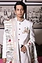 Featuring a white sherwani in matka silk base with hand embroidery. It is paired with pants and an embroidered dupatta. Style it with a pair of mojaris and a bracelet for a traditional look, Perfect attire for your wedding, sangeet or engagement ceremony.