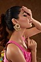 Gold Finish Moissanite Polki & Pearl Stud Earrings In Sterling Silver