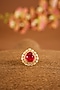 Featuring a gold finish ring studded with moissanite polki, eurostars and glass-filled ruby stones, set in 92.5 sterling silver. This ring embodies refined elegance and timeless style, perfect for festive occasions or wedding ceremonies.