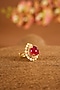 Gold Finish Moissanite Polki & Ruby Stone Ring In Sterling Silver