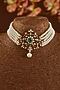 Featuring a gold finish choker necklace studded with zircon, freshwater pearls, synthetic ruby and emeralds, set in 92.5 sterling silver. It is paired with a matching pair of earrings. Perfect wear for festive occasions or wedding ceremonies.