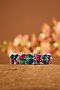Featuring a white finish bracelet studded with eurostar zircons, emeralds, rubies, blue sapphire and eurostars, set in 92.5 sterling silver. Pair this bangle with both traditional and contemporary outfits for a subtle pop of color. Perfect for festive occasions, casual outings, and everyday elegance.