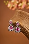 White Gold Finish Zircon & Ruby Stone Enameled Dangler Earrings In Sterling Silver