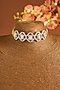 Featuring a white gold finish necklace studded with moissanite polki and eurostar zircons, set in 92.5 sterling silver. It is paired with a matching pair of earrings. Add a touch of sparkle to your ensemble, perfect for weddings, cocktail parties or festive celebrations.