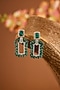Featuring a pair of white gold finish dangler earrings studded with eurostar zircons and glass-filled emerald stones, set in 92.5 sterling silver. These earrings embody refined elegance and timeless style, perfect for festive occasions or wedding ceremonies.