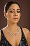 Featuring a white gold finish long necklace studded with eurostar zircons and glass-filled emerald stones, set in 92.5 sterling silver. It is paired with a matching pair of earrings. Add a touch of sparkle to your ensemble, perfect for weddings, cocktail parties or festive celebrations.