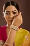 Featuring a yellow gold finish bangle studded with moissanite polki, set in 92.5 sterling silver. Add a touch of sparkle to your ensemble, perfect for weddings, cocktail parties or festive celebrations.