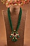 Featuring a yellow gold finish pendant necklace studded with eurostar, glass filled emeralds, moissanite polki and glass filled ruby, set in 92.5 sterling silver. Accentuate this elegant jewellery with your look for a polished finish, ideal for festive functions, family gatherings or wedding celebrations.