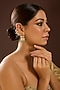 Yellow Gold Finish Moissanite Polki & Emerald Stone Jhumka Earrings In Sterling Silver