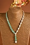 Yellow Gold Finish Moissanite Polki & Emerald Stone Long Necklace In Sterling Silver