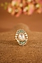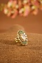 Featuring a yellow gold finish adjustable ring studded with moissanite polki and glass-filled emerald stones, set in 92.5 sterling silver. This ring embodies refined elegance and timeless style, perfect for festive occasions or wedding ceremonies.