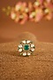 Featuring a yellow gold finish ring studded with moissanite polki, eurostars and glass-filled emerald stones, set in 92.5 sterling silver. This ring embodies refined elegance and timeless style, perfect for festive occasions or wedding ceremonies.