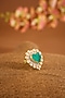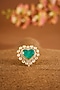 Featuring a yellow gold finish ring studded with moissanite polki and glass-filled emerald stones, set in 92.5 sterling silver. This ring embodies refined elegance and timeless style, perfect for festive occasions or wedding ceremonies.