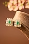Yellow Gold Finish Moissanite Polki & Emerald Stud Earrings In Sterling Silver