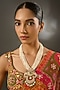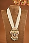 Featuring a yellow gold finish long necklace studded with moissanite polki, taiwan shell pearls, eurostars and glass-filled emerald stones, set in 92.5 sterling silver. This necklace embodies refined elegance and timeless style, perfect for festive occasions or wedding ceremonies.