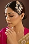 Featuring a yellow gold finish pink enameled passa studded with moissanite polkis, taiwan shell pearls and glass-filled sapphire stones, set in 92.5 sterling silver. Add a touch of sparkle to your ensemble, perfect for weddings, cocktail parties or festive celebrations.