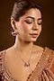Featuring a yellow gold finish pendant chain necklace studded with glass filled ruby, moissanite polki and eurostar, set in 92.5 sterling silver. It is paired with a matching pair of earrings. Accentuate this elegant jewellery with your look for a polished finish, ideal for festive functions, family gatherings or wedding celebrations.