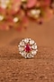 Featuring a yellow gold finish ring studded with moissanite polki and glass filled ruby, set in 92.5 sterling silver. Accentuate this elegant jewellery with your look for a polished finish, ideal for festive functions, family gatherings or wedding celebrations.
