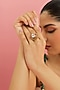 Featuring a yellow gold finish openable ring studded with moissanite polki, glass filled ruby and eurostar swarovski, set in 92.5 sterling silver. This jewellery is perfect for weddings, engagement ceremonies or festive gatherings.