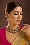 Featuring a yellow gold finish choker necklace studded with eurostar swarovski zircons, moissanite polki and glass-filled ruby stones, set in 92.5 sterling silver. It is paired with a matching pair of earrings. Add a touch of sparkle to your ensemble, perfect for weddings, cocktail parties or festive celebrations.