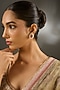 Featuring a pair of yellow gold finish stud earrings studded with moissanite polki, eurostars and glass-filled ruby stones, set in 92.5 sterling silver. Style these earrings with both traditional and contemporary outfits for a subtle pop of color. Perfect for festive occasions, casual outings and everyday elegance.