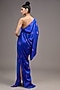 Blue Silk Lycra Satin Tie-Dye One-Shoulder Dress