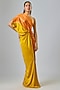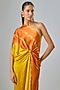 Featuring a gold front-knot one shoulder leheriya dress in lycra silk satin base. Accentuate it with statement earrings and heels for vacation or beach wear.