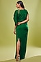 Featuring a green draped dress in pure silk base knot detail.