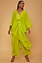 Featuring a green tunic in silk base with knot detail. It is paired with matching trousers.