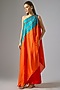 Featuring an orange leheriya one shoulder tunic in silk satin georgette base with shoulder string detail. It is paired with silk crepe trousers. Accentuate it with statement earrings and heels for a festive look.