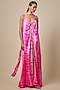 Featuring a pink front-knot strappy leheriya dress in lycra silk satin base. It is paired with a scarf. Accentuate it with statement earrings and heels for a festive vibe.
