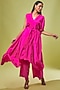 Featuring a pink draped tunic in pure silk base. It is paired with matching trousers and a belt.
