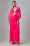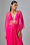 Featuring a pink front knot cover-up in silk organza base. It is paired with a silk lycra satin bikini and trousers. Accentuate it with statement earrings and heels for a vacation or beach wear.