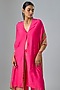 Featuring a pink leheriya kaftan in silk satin georgette base with a v-neck. It is paired with silk crepe trousers and a belt. Accentuate it with statement earrings and heels for a festive look.