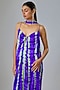 Featuring a purple front-knot strappy leheriya dress in lycra silk satin base. It is paired with a scarf. Accentuate it with statement earrings and heels for a festive vibe.