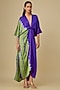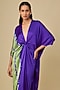 Featuring a purple leheriya dress in silk lycra satin base with a front knot and side slit. Accentuate with minimal jewellery and heels for an evening soiree or a brunch.