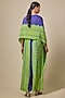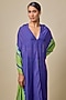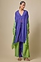 Featuring a purple leheriya kaftan in silk satin georgette base with a v-neck. It is paired with silk crepe trousers and a belt. Accentuate it with statement earrings and heels for a festive look.