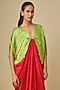 Featuring a red leheriya kaftan dress in silk lycra satin base with a knot detail. Accentuate with minimal jewellery and heels for an evening soiree or a brunch.