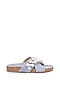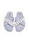 Featuring a pair of blue flats in genuine leather base with embellishments and a cork footbed. It has a leather underlining, gripped outer sole and one-inch heels.