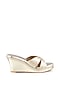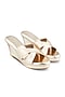 Featuring a pair of gold wedges in faux leather base with crystal embroidery. It has a faux leather underlining and 3.5-inch heels. Step into luxury and make a statement with every step in these meticulously crafted and opulent heels.