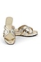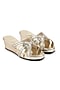 Featuring a pair of light gold wedges in faux leather base with crystal embroidery. It has a faux leather underlining and 2.25-inch heels. Step into luxury and make a statement with every step in these meticulously crafted and opulent heels.